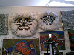 RS: "Over here, with that sculptural weaving I can make the masks on any surface. That's what I did here. And like my friend up here."