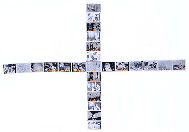 A: Unlimited semiosis, play of the signifier, the scene of the abyss, our immersion in a forest of signs. Yes, I see your point. The way Koch has arrayed the images across the wall, well, I can't help but think of a picture magazine layout in which all the text has been erased so that one must now re-imagine new text to surround them, generate one's own reading. In fact, one group of images is titled Readings.