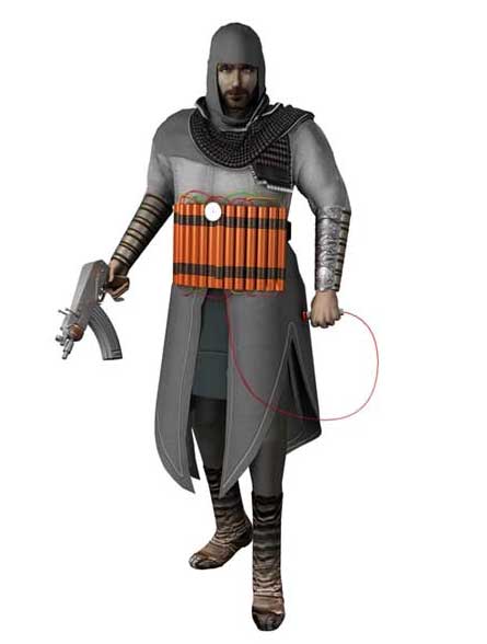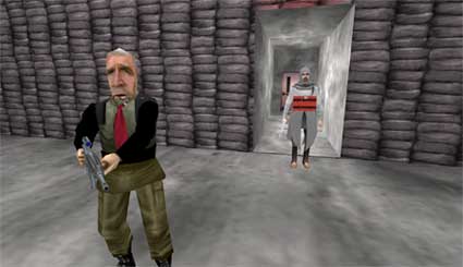 A: It also depends on the ideological bias of the viewer as to how such imagery is deciphered. But let's turn back to Bilal co-optation of that video game; he inserted himself digitally into the game as the virtual jihadi in order to point out the racism of the original game. Bilal, whose brother was accidently killed in the Iraq war by American shrapnel, said "Virtual Jihadi" is meant to bring attention to the vulnerability of Iraqi civilians to the travesties of the current war and racist generalizations and stereotypes as exhibited in games such as "Quest for Saddam."