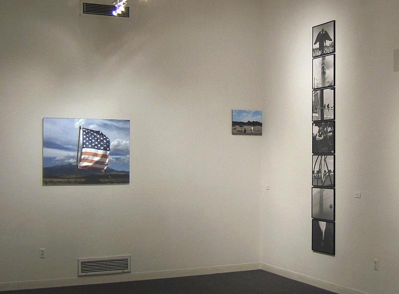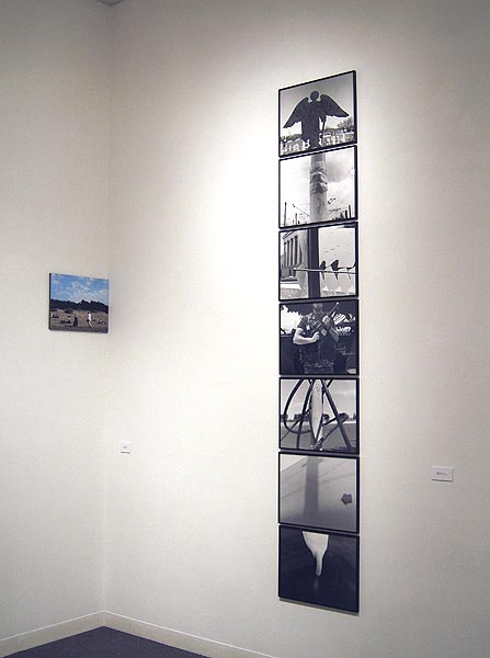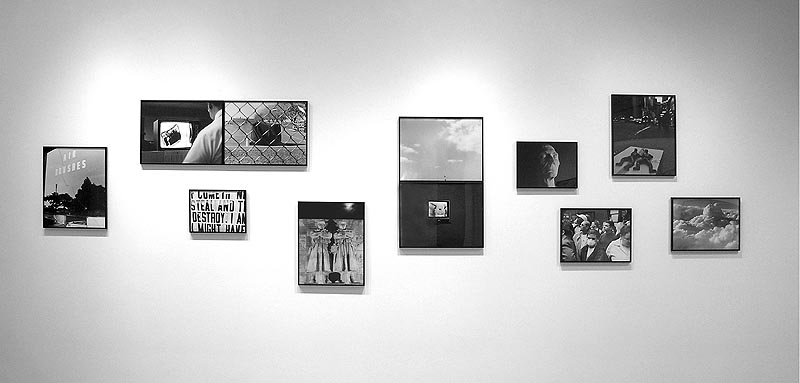 Installation view: osaycanyousee (46 x 156 in. overall, 2004)A: And I'm reminded of Nathan Lyons' groundbreaking photobook Notations in Passing (1974) with its photographic probing of the strangeness of the commonplace. Koch extends Lyons' work into more highly focused emphases here on the context of post-9/11 America.