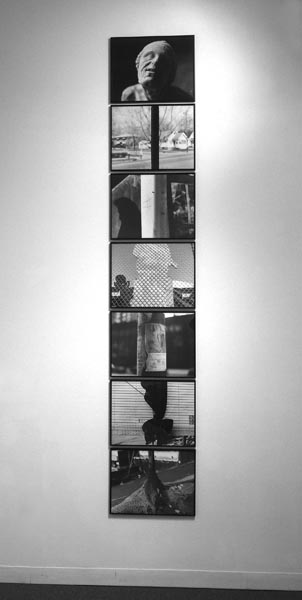 osaycanyousee (detail, 30 x 19 in., gelatin silver prints, 2004)B: Oh yes, Koch has developed a penchant for vertical juxtapositioning effective in creating provocative associations both on a formal level and conceptually, just as Minor White did for horizontal arrays, in a series of stacked prints he calls Totems.