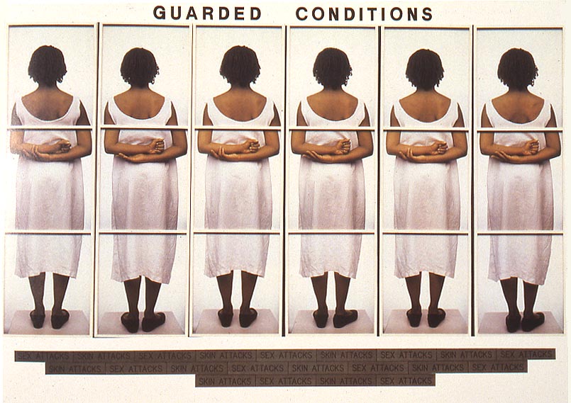 Guarded Conditions (1989) Lorna SimpsonA: I agree. Koch (along with Simpson and others) makes me feel like they he isn't talking down to me, but respects my intelligence. Instead of Bilal's canny, strident voice, we have here in Koch's installation, as I've said before, "an uncanny apparition on our shores."